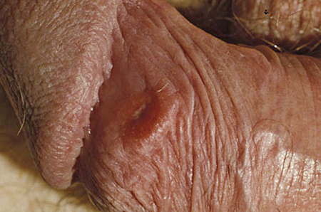 - Oömt, indurerat sår (hård schanker), oftast genitalt men kan även sitta i munslemhinna och hud. Multipla sår förekommer. Lokalt finner man oömma adeniter. Obehandlat läker såret på 6–8 veckor (Figur 3–5).