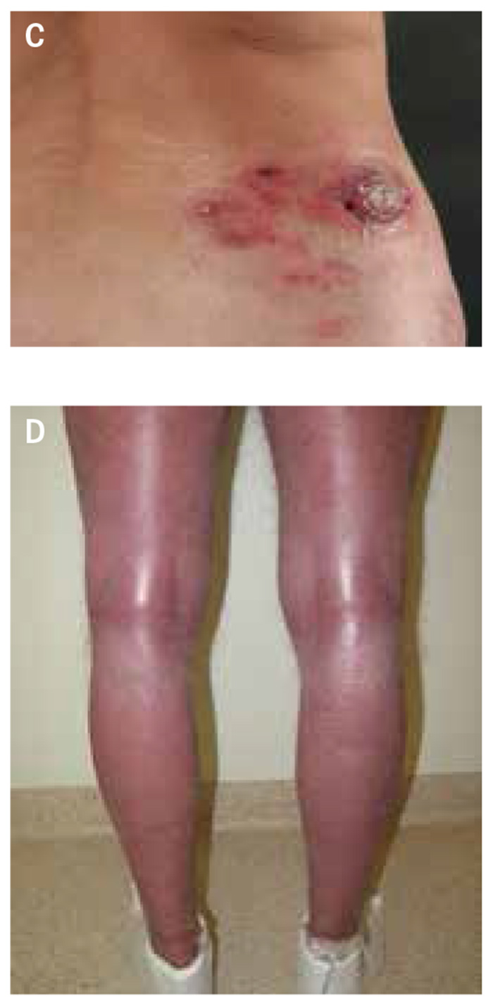 Sézarys syndrom beskrevs första gången år 1938 av Albert Sézary och består av en triad av erytrodermi, generell lymfkörtelförstoring och blodengagemang (Figur 1D). Tillståndet liknar erytroderm mycosis fungoides och behandlingen är likartad. Sézarys syndrom drabbar oftast medelålders eller äldre personer och något oftare män än kvinnor. Många patienter med mycosis fungoides eller Sézarys syndrom lider av en besvärlig klåda. Ibland ses också hyperkeratoser och sprickbildning i handflator och fotsulor, håravfall och nagelpåverkan.