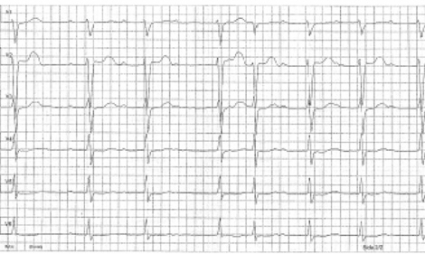 Breddökade QRS-komplex. Substanser som fördröjer kammardepolarisationen genom att blockera myocyternas snabba natriumkanaler (t ex tricykliska antidepressiva) kallas ofta membranstabiliserande. De ger breddökade QRS-komplex och hypotoni [22, 23]. Dessa fynd i samband med misstänkt intoxikation ska behandlas med natriumbikarbonat (NaHCO3 50 mg/ml 200 ml till vuxna; 2 mEq/kg till barn) [4, 5]. Vid utebliven effekt kan behandling med hyperventilering och hyperton koksaltlösning bli aktuell [5]. Samtidig hämning av natriumkanalerna i CNS sänker kramptröskeln. Fenytoin och fosfenytoin rekommenderas inte vid krampanfall eftersom de kan förvärra kardiotoxiciteten [4, 24]. Hyperkalemi kan orsaka liknande EKG-förändringar [25].