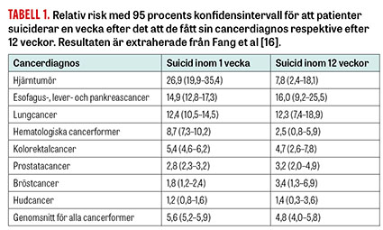 Det finns flera etiska argument för att acceptera kontinuerlig och djup palliativ sedering på patientens begäran en längre tid före förväntad död. Ett är de potentiellt självmordsförebyggande effekterna. En svensk undersökning indikerade att patienter med nydiagnostiserad cancersjukdom har en signifikant ökad självmordsrisk en vecka efter diagnos jämfört med befolkningen, se Tabell 1 [16]. I en annan svensk studie fann man att också ALS-patienter hade en förhöjd risk för självmord (relativ risk 5,8) [17].