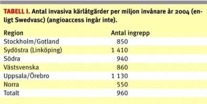 Det föreligger avsevärda geografiska skillnader i frekvensen åtgärder (Tabell I). Andelen endovaskulära ingrepp har sakta ökat och utgör för närvarande minst en tredjedel av den totala volymen.