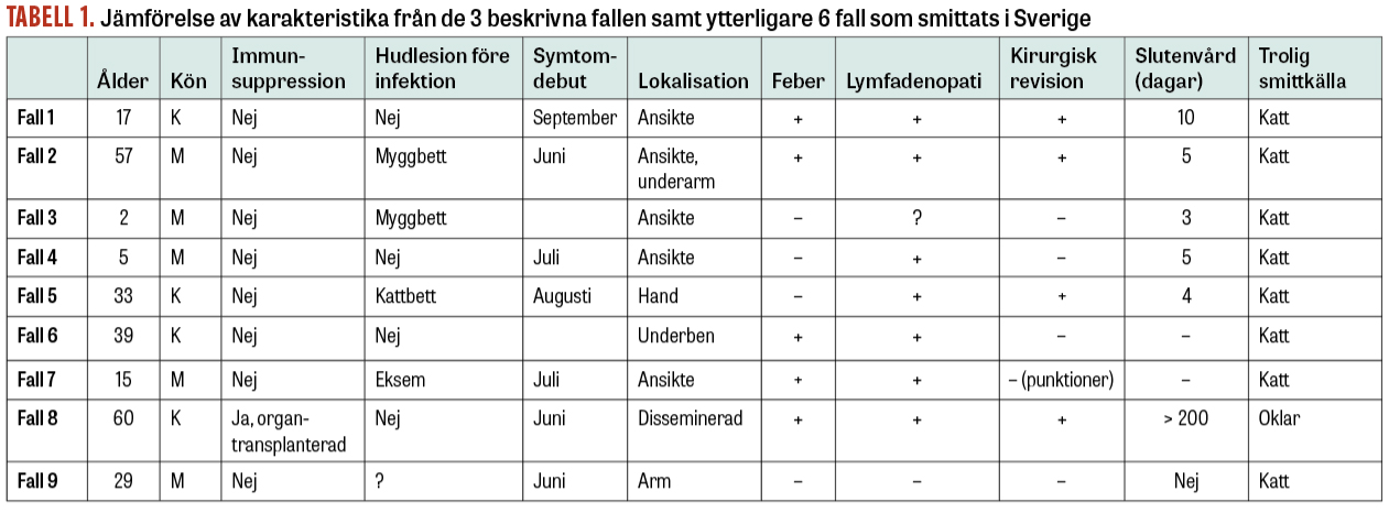 Kokoppsvirus förekommer främst i Europa, men stora områden i västra, södra och östra Europa finns inte representerade i några rapporter. Det är oklart om den inneslutna förekomsten beror på att viruset inte är endemiskt i dessa områden eller på att testningen är begränsad [1]. I Sverige har endast tre humanfall beskrivits i litteraturen: två fall i Läkartidningen år 1991 och ett fall år 2000, samtliga smittade via tamkatter i Skåne [8, 9]. Med hjälp av flera kliniker runt om i Sverige kan nu ytterligare svenska fall av kokoppsinfektion rapporteras.