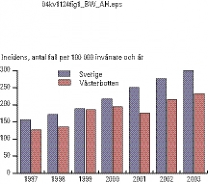 Västerbotten har länge haft en av Sveriges lägsta klamydiaincidenser, och 2001 var den lägst i landet, Figur 1 [1].
