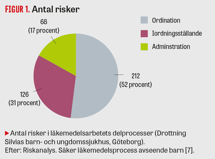 Läkemedelshanteringen kan delas in i delprocesserna ordination, iordningställande och administration. Läkemedelsverket fann vid en genomgång 2013 att drygt 100 000 vårdskador inträffar årligen i Sverige, och läkemedelsanvändning uppskattas bidra till 8 procent av dem [2]. »Fel« med avseende på exempelvis dos, läkemedel, tidpunkt eller administrationssätt kan uppstå när som helst under läkemedelshanteringen. Genom att kartlägga risker kan åtgärder vidtas för att förbättra säkerheten vid läkemedelsbehandling.