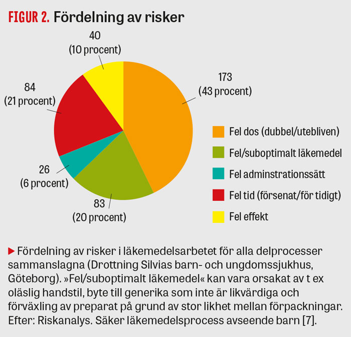 Internationella studier slår fast att läkemedelshanteringsfel inom barnsjukvården är vanliga och av klinisk betydelse. I en prospektiv amerikansk studie inom pediatrisk slutenvård fann man fel i 5,7 procent av läkemedelsbehandlingarna, och risken för patientskada uppskattades till tre gånger högre än i slutenvård av vuxna [3]. I en brittisk studie fann man att 13,2 procent av ordinationerna var felaktiga [4].