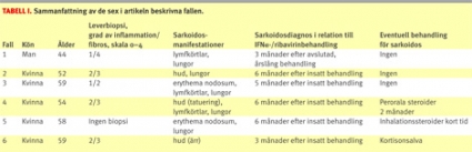 Sarkoidos tycks således oftast uppstå i samband med IFNa-behandlingen, men kan också uppträda efter avslutad behandling [15, 16] (Tabell I).