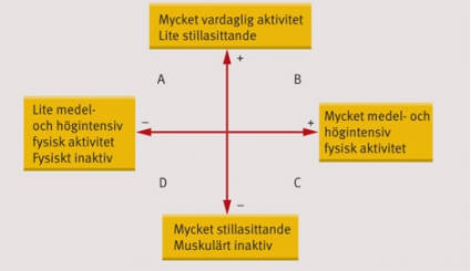 Nationella riktlinjer rekommenderar medel- och högintensiv fysisk aktivitet (MHFA) 30 minuter/dag, där aktivitet med längre duration eller högre intensitet ger än större hälsoeffekter. De senaste åren har dock betydelsen av längre stunder av stillasittande, oberoende av övrig MHFA, visats öka risken för flertalet av de stora folksjukdomarna och förtida död [3].