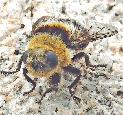 Slutligen ett råd till skogsvandrare under sommaren: Om en humleliknande insekt »verkar nyfiken och plötsligt står stilla i luften« några centimeter eller decimeter framför ditt ansikte så bör du omedelbart vifta bort insekten – annars finns risk att den sprutar ut små larver mot ett av dina ögon.