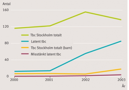 I Stockholms läns landsting var år 2009 45 procent av tbc-fallen unga vuxna, varav 94 procent utlandsfödda [Mats Pergert, Smittskydd Stockholm, pers medd; 2010]. Majoriteten av barnen var utlandsfödda eller hade utlandsfödda föräldrar. Liknande erfarenhet har man från Frankrike, USA och Kanada [26, 27].