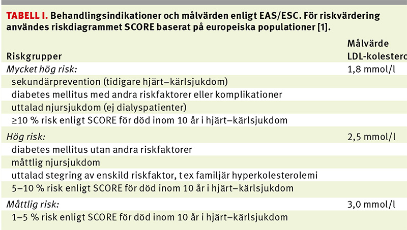 Riktlinjerna för lipidbehandling för kardiovaskulär prevention avviker delvis från dem som publicerades av European Atherosclerosis Society (EAS) och European Society of Cardiology (ESC) 2011 och 2012 [5, 6]. Detta har föranlett diskussion, viss förvirring och osäkerhet om vad som gäller. Det finns därför anledning att kommentera och jämföra de båda riktlinjerna.