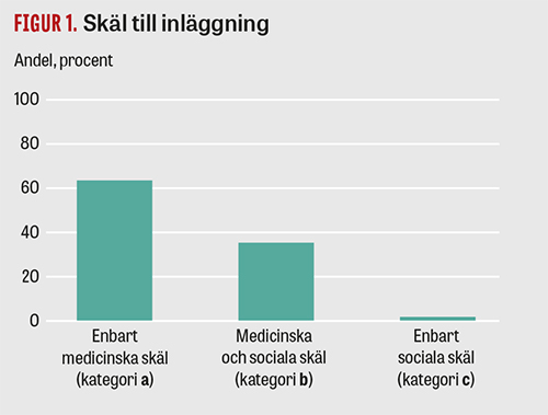 Sveriges befolkning blir äldre [1] och allt fler kommer att leva längre med kronisk sjukdom och ett ökat behov av vård [6, 12]. Kostnaden för hälso- och sjukvård beräknas öka med cirka 30 procent 2010–2050 [2]. Redan i dag är vårdplatsbrist och överbeläggningar ett betydande problem på svenska sjukhus. Trots att äldre och multisjuka patienter ofta behöver sjukvård är de inte alltid betjänta av akutsjukhusets resurser i dagens omfattning. Journalstudien visar att en försvinnande liten andel patienter läggs in på sjukhus av enbart sociala skäl, vilket stämmer väl överens med den tidigare studien i Skåne [9]; kombination av medicinska och sociala faktorer är betydligt vanligare och indikerar att det förekommer brister i övergången mellan vård som sker i landstingets respektive kommunens regi. Det senare stöds av de fynd som visar att en stor andel (cirka 30 procent) av de genomgångna patienterna sjukhusvårdats inom de 30 dagar som föregick det aktuella vårdtillfället. Det stämmer väl med prospektiva opublicerade data från Hallands sjukhus där ålder över 80 år var en stark riskfaktor för oplanerad återinskrivning.
