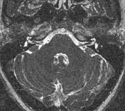 Morfologiska bilder med hög upplösning. Morfologisk MR med hög upplösning är värdefull, tex för undersökning av temporalben och kranialnerver (Figur 1). Tredimensionell T1-viktad gradientekosekvens kan erhållas med hög isotropisk upplösning. Den används tex för att detektera migrationsstörningar hos barn med epilepsi och som morfologiskt bildunderlag för överlagring av fMRI-data.