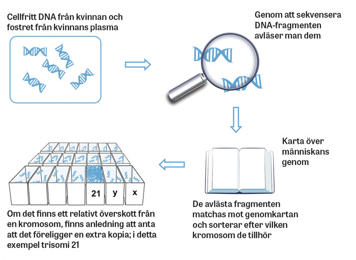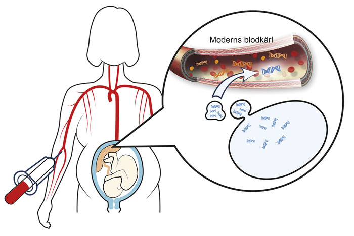Den senaste utvecklingen är att man nu kan erbjuda ett blodprov på mamman, NIPT, där man analyserar cellfritt DNA i plasma. En mindre del av det cellfria DNA:t kommer från fostret och kan användas för att detektera kromosomavvikelser. Möjligheten att identifiera fostrets DNA i mammans blod upptäcktes redan på 1990-talet och har använts i mer än ett decennium för att identifiera fostrets blodgrupp (Rhesusfaktor D).