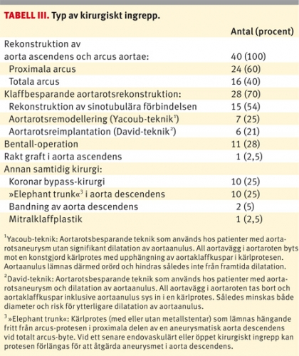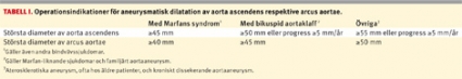 Således bedöms indikationen för operation av arcus alltid i kombination med behovet av en samtidig åtgärd av aorta ascendens, där risken för ruptur alternativt dissektion är större (Tabell I).