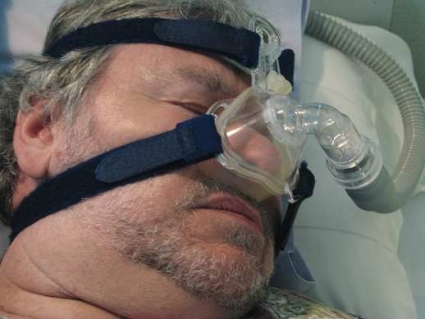 Övertrycksandning (CPAP). Behandling med övertrycksandning (continuous positive airway pressure, CPAP) (Figur 2) minskar signifikant subjektiv trötthet mätt med en sömnenkät, Epworth sleepiness scale. Objektiv mätning av insomningstid och förmåga att hålla sig vaken som ett mått på dagtrötthet visar också signifikant förbättring. Frekvensen av apnéer och hypopnéer per timme sömn (AHI) minskar signifikant med CPAP till i medeltal 5,4±4,8, vilket närmar sig gränsvärdet för normalt AHI. Resultaten är motsägande för effekten på blodtrycket för patienter som behandlades med CPAP, och det vetenskapliga underlaget för att dra slutsatser om behandlingens effekter på livskvaliteten är otillräckligt. Ungefär 70 procent av patienterna använde fortfarande CPAP i medeltal 5,3 (SD 4,4–6,2) timmar per natt efter i medeltal fyra år. Förutsättningen var att patienterna och apparaten kontrollerades av läkare ungefär en månad efter behandlingens början och därefter var sjätte till var tolfte månad samt att patienterna kunde ringa och få snabb hjälp vid behov.