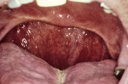 Temperature-controlled radio frequency tissue volume ablation. En randomiserad, kontrollerad studie jämför radiofrekvensbehandling med sham-kirurgi på indikationen OSAS. Ingen effekt visas på funktion mätt med sömnenkät (FOSQ) eller subjektiv trötthet mätt med Epworth sleepiness scale. Operationsmetoden, oavsett om den använts för behandling av obstruktiv sömnapné eller av snarkning, kan leda till komplikationer som innefattar sår i slemhinnan, gomfistlar, förlust av gomspenen, blödning och infektioner. Vid kirurgisk behandling av tungan har fall av varbildning i tungbasen, svullnad av tungan och munbottenödem rapporterats.