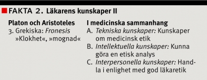En kunskapsaspekt man inte särskilt beaktade i Manchester är den som täcks in av den aristoteliska termen »fronesis«, som kan översättas med »klokskap« eller »vishet«. I medicinska sammanhang bör man därför komplettera Manchesterskolans tänkande med det som presenteras i högra spalten i Fakta 2.