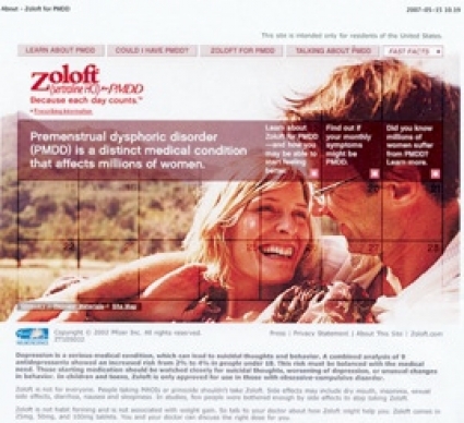 För att minska stigmatiseringen av kvinnor som behandlas med SSRI beskrevs kvinnorna i reklamen som frigjorda och jämlika, tex att behandlingen »ger tillbaka« kvinnan hennes förlorade »produktiva dagar«. Kvinnor som upplevt god effekt av SSRI beskrev behovet av medicinering främst i relation till sin funktion som maka eller mor, som »att min behandling var nödvändig för min familjs fortsatta funktion«.