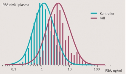 Cirka 10 procent av medelålders män har PSA-nivåer över 3,0 ng/ml, och knappt en fjärdedel av dessa män har en prostatacancer vid mellannålsbiopsi av prostata [16, 17]. I ERSPC fann man att regelbunden PSA-testning och behandling av tidigt upptäckt prostatacancer ledde till lägre dödlighet i prostatacancer, men till priset av överdiagnostik och överbehandling [1].