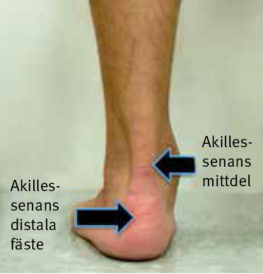 Figur 1. Akillestendinopati kan drabba senans mittdel eller distala del (vid hälsenans infäste i kalkaneus).