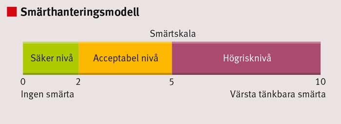 Figur 2. Smärthanteringsmodellen är ett mycket användbart verktyg, inte minst för att anpassa träningsintensiteten.