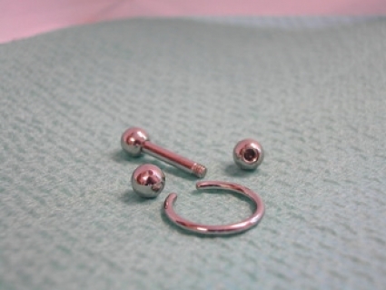 De vanligaste smyckena är olika former av stavar och ringar. Staven har en kula eller platta i ena änden och en avskruvbar kula i andra änden. Ringen sluts med hjälp av en kula som lossas då ringen dras isär (Figur 2, 3).