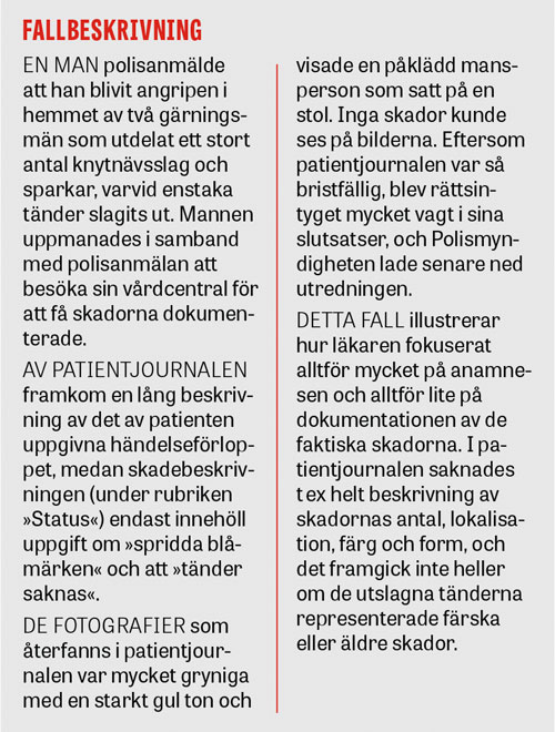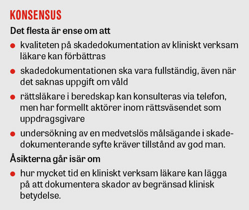 Behovet av adekvat skadedokumentation är dock, och kommer alltid att vara, betydligt mer omfattande än vad som kan tillgodoses av läkare anställda av Rättsmedicinalverket.