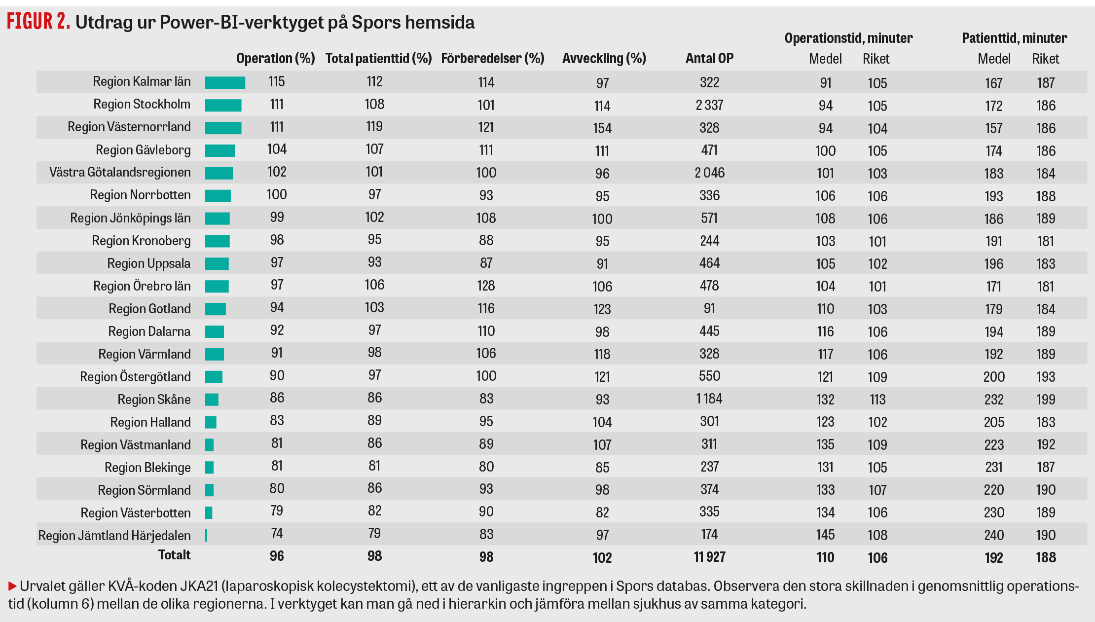 I Sverige finns sedan flera år ett stort antal nationella kvalitetsregister. De baserar sig oftast på grupper av patienter som har en gemensam diagnos [1] eller som genomgått någon specificerad behandling eller ingrepp [2]. Det har däremot saknats ett övergripande nationellt register som kan ge en fullständig bild av hur operationsresurser utnyttjas och inverkar på patientutfall under den perioperativa perioden. Det är viktigt att även inkludera processmått. En effektiv logistik kan påverka både utfall och upplevd kvalitet för patienten. Klarar sjukhusen att operera patienter med cancerdiagnos inom det rekommenderade tidsfönstret? Stryks patienter med kort varsel från operationsprogrammet? SPOR följer upp anledningar till detta.