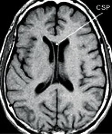 Saeptum pellucidum består av två tunna vävnadsskikt som bildar den mediala väggen mellan sidoventriklarna. Under fosterlivet är vävnadsskikten separerade, men sammanlöds före födseln eller under barndomen. Med cavum saepti pellucidi avses en hålbildning mellan vävnadsskikten med inträde av likvor (Figur 2 [ned till höger]). Prevalensen av CSP i befolkningen varierar mellan olika studier, men den är sannolikt cirka 5 procent [34]. Flera studier har visat att förekomst av CSP är överrepresenterad hos professionella boxare, där prevalensen är 10–20 procent [32], och ses framför allt tillsammans med generell atrofi. Emellertid finns det ingen studie som funnit ett signifikant samband mellan CSP och kliniska symtom [32], och vissa forskare har därför ställt frågan om CSP är en medfödd anomali utan klinisk signifikans [35, 36].