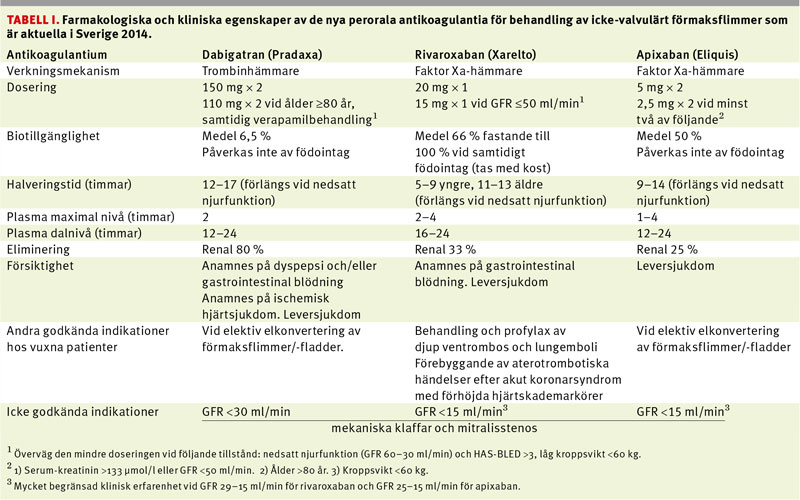 Användning av nya orala antikoagulantia (NOAK) för att förebygga stroke hos vuxna patienter med icke-valvulärt förmaksflimmer har uppmärksammats stort de senaste två åren. För indikationen förmaksflimmer utkom först subventionen för trombinhämmaren dabigatran (Pradaxa) för att följas av faktor Xa-hämmarna rivaroxaban (Xarelto) och apixaban (Eliquis) (Tabell I).