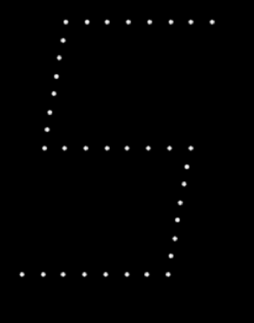Exempel på siffror uppbyggda av mikroprickar i syntest i appen MultiBit.