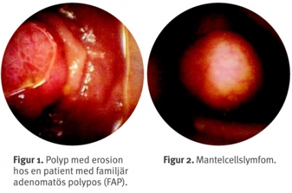Primära adenokarcinom diagnostiserades hos tre patienter (alla män). Två uppvisade sjukdom med lymfkörtelmetastasering respektive omentöverväxt vid operation. En patient bedömdes vara radikalt resekerad. Gastrointestinala stromacellstumörer, sk GIST, påvisades hos två patienter – båda radikalt resekerade. Hos en ung kvinna med känd familjär adenomatös polypos (FAP) påvisades ett tiotal polyper i tunntarmen, varav en med blödningsstigman (Figur 1). En patient med ett tjugotal polyper genomgick pushenteroskopi, där biopsier från en av de proximala polyperna visade mantelcellslymfom (Figur 2). En patient hade vid operation tunntarmslymfom.