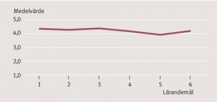 Svarsfrekvensen på kursvärderingsenkäten var 92 procent (n = 12). Deltagarnas upplevelse var att de överlag uppnådde kursens lärandemål »i högre grad« (svarsalternativ 4) och/eller »helt och hållet« (svarsalternativ 5) samt att kursens lärandeaktiviteter och formativa examinerande gruppuppgifter hade bidragit till detta (Figur 5). Kursutvärderingen visade att samtliga kursdeltagare blev godkända på de examinerande momenten vid första examinationstillfället. Den kursansvarige var mycket nöjd med gruppens insats och ansåg att kursdeltagarna uppnått lärandemålen på ett utmärkt sätt. Ett år efter avslutad kurs besvarades den individuella skriftliga uppföljningsfrågan av 8 av 13 deltagare. Av dem som svarade var samtliga positiva till den upplevda nyttan av kursen och ansåg att de som ett resultat av kursen bl a kunnat diskuterat forskningsrön på kliniken, kritiskt granska vetenskapliga artiklar och arbeta med ST-projektet på ett bättre sätt än tidigare.