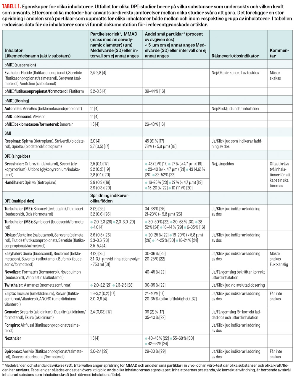 Antalet olika inhalatorer har ökat enormt på den svenska marknaden under senare år. Det finns inget sätt att på förhand avgöra vilken inhalator som passar bäst för en viss patient. Det är viktigt att utvärdera valet regelbundet och vid behov byta till en annan inhalator.