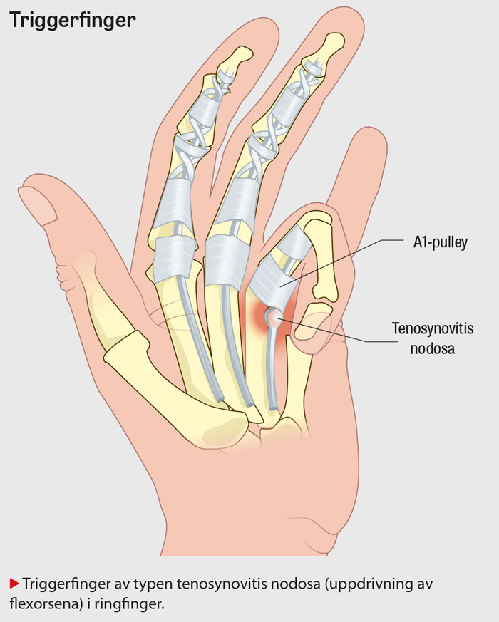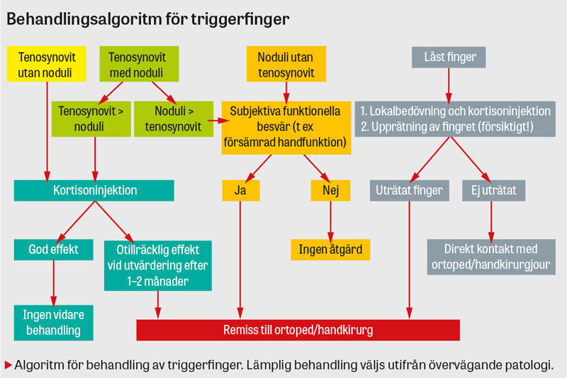 - patienter med svåra symtom vid triggerfinger ska skyndsamt remitteras till ortoped/handkirurg