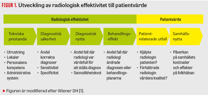Den årliga svenska Röntgenveckan hade 2016 värdebaserad radiologi som huvudtema. Detta begrepp har växt fram i avsikt att förändra fokus från enbart prestationer och prestanda inom radiologisk teknologi till den nytta som undersökningarna skapar för patienten [1] (Figur 1).