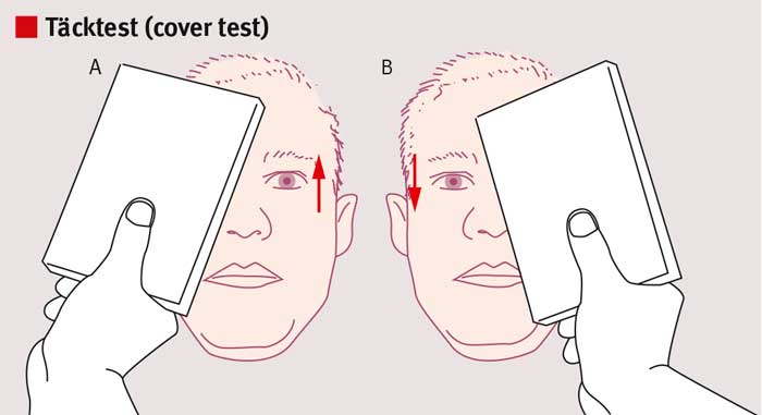 - Positivt täcktest (cover test) (refixation on cover test: RCT).